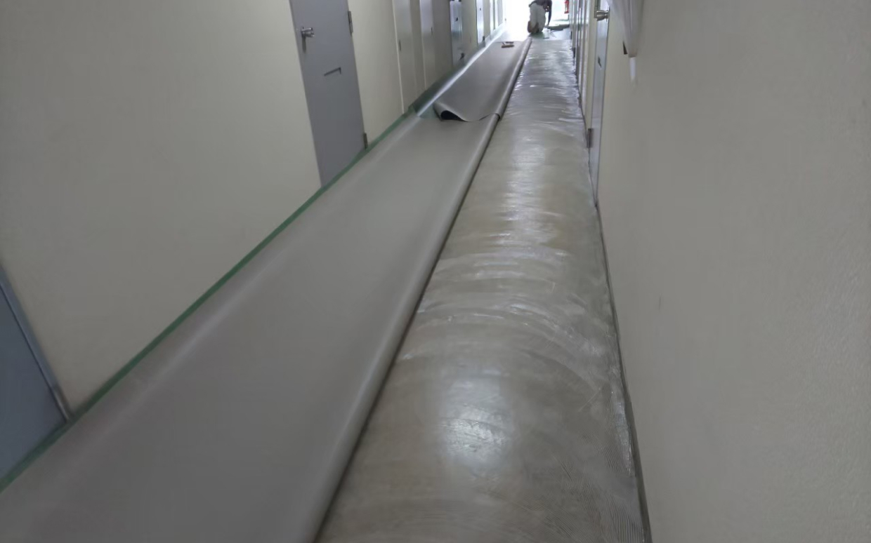マンションの共用部やビルの廊下などに使われる長尺シートは、滑りにくく、汚れに強い床材として人気があります。当社では、下地処理からシート貼りまで一貫して対応し、機能性とデザイン性を兼ね備えた仕上がりをお届けします。用途やご予算に応じた施工が可能です。